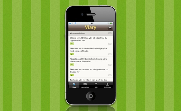 Sedan hittade vi även på några saker som var mer krävande och som vi skulle göra på fritiden (att till exempel prata med någon i familjen om relationen), men utgångsläget var att vi även under de mest hektiska dagarna skulle kunna ta upp telefonen, öppna Viary – och ta åtminstone ett litet steg mot bättre relationer. Experimentet fick namnet Project Grandma – döpt efter Niklas mormor. :D