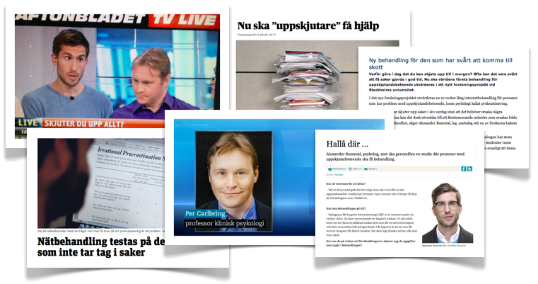 I slutet på augusti informerade vi om ett nytt och spännande forskningsprojekt som äger rum i höst – Prokrastinera. I ett samarbete mellan Alexander Rozental, leg. psykolog på Psykologifabriken, samt Per Carlbring, professor i klinisk psykologi vid Stockholms Universitet, prövas för första gången en internetbaserad självhjälpsbehandling för personer som har stora svårigheter att komma till skott med saker i sin vardag, även kallat prokrastinering. Förhoppningen är att kunna sprida kunskap om problemet till allmänheten, och i förlängningen nå ut med rätt hjälp till så många som möjligt.
